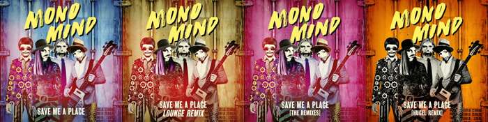 Cover art of all the versions of the Mono Mind single “Save Me a Place”, featuring a slightly evolved design from the first single