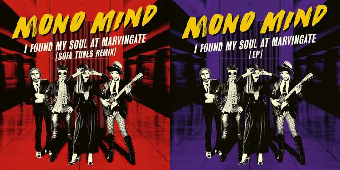 Cover art of both versions of the Mono Mind single “I Found My Soul at Marvingate”, featuring a design template that would be followed by all their subsequent single releases