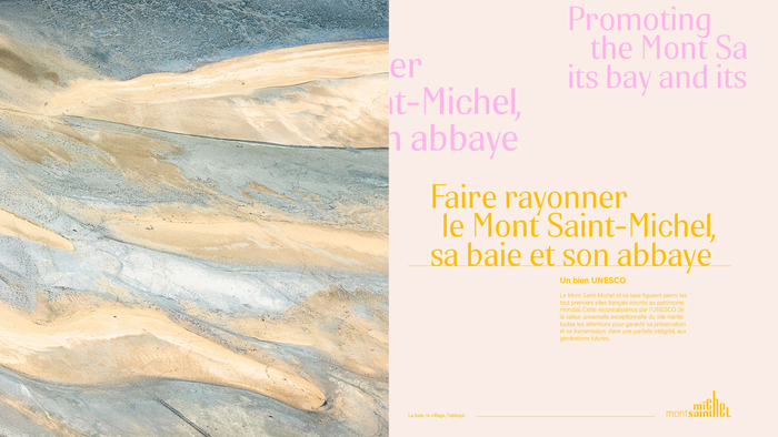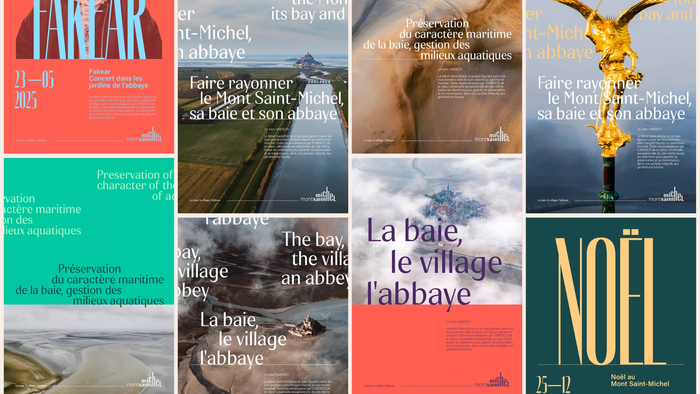 Beyond its design, this typeface plays a central role throughout the visual system. Deployed in several weights and conceived to stretch vertically, it extends into use what makes the logotype distinctive: a form of writing designed to rise, to converse with the architecture, and to open the gaze toward the landscape of the bay. Typography thus becomes far more than a functional tool: it sets the tone, establishes a restrained elegance, and connects the heritage of Mont-Saint-Michel with a contemporary graphic vision. A collaboration that aptly illustrates the strategic role a foundry like Blaze Type can play today in shaping public identities.
