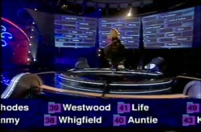 The real star of this show here is the slightly modified use of Terminal, designed by Damien Mair and released by T-26 in 1995. It’s paired together with Antique Olive Compact for “The National Lottery.” OCR-B and Helvetica were heavily used for the gameplay.