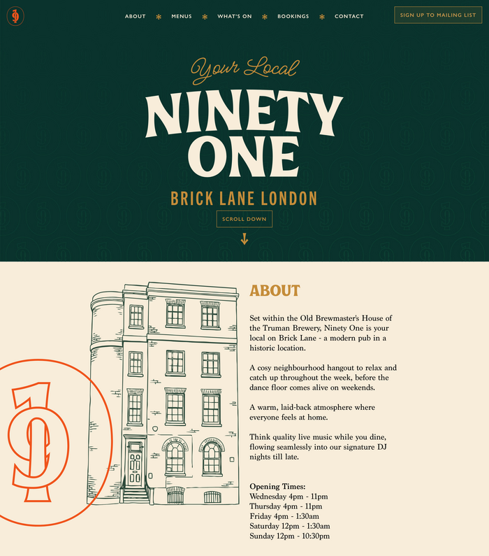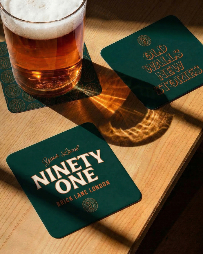 For this project, Another Kind Studio wanted to craft an identity that felt fitting for a site with such a massive legacy. Situated on the grounds of what was once the largest brewery in the world, we designed a new pub brand for Ninety One to honour that heritage while carving out its own modern space on Brick Lane in East London.