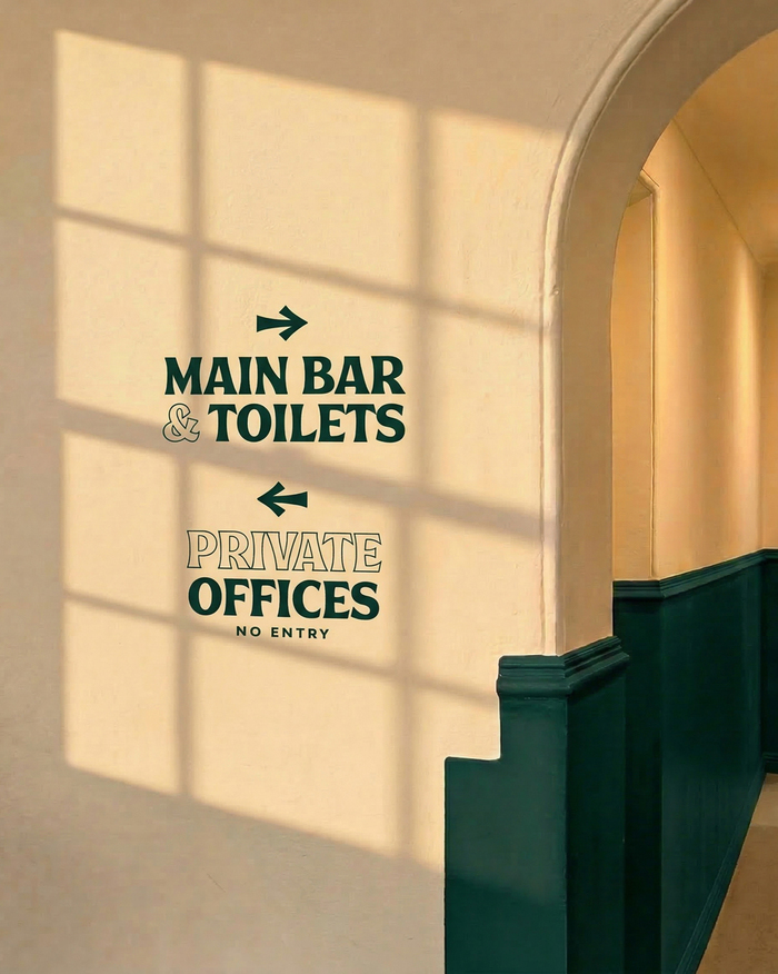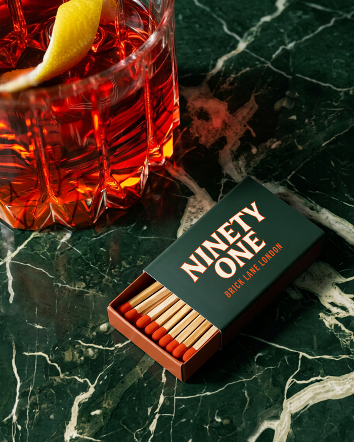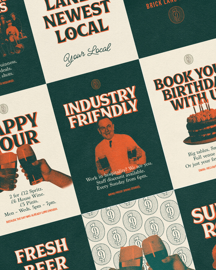 From the deep greens and warm oranges to the period inspired typography, we designed the brand to live and breathe in physical spaces and feel totally at home in its surroundings. Explore the new visual identity in action below across tactile menus, custom tap badges, wayfinding signage, and matchboxes.