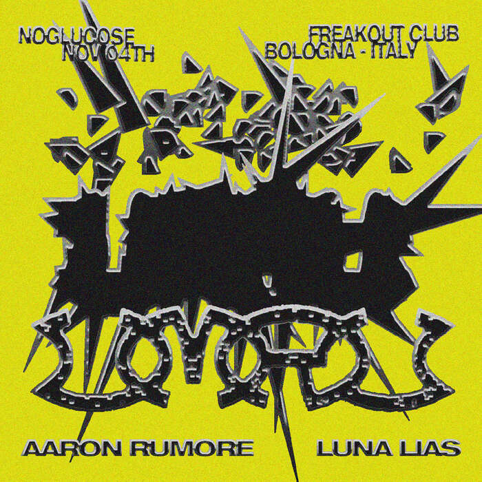Graphics for an event organized by No Glucose at Bologna’s Freakout Club, with umru, Aaron Rumore, and Luna Lias.