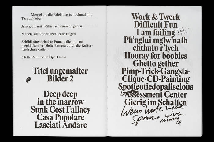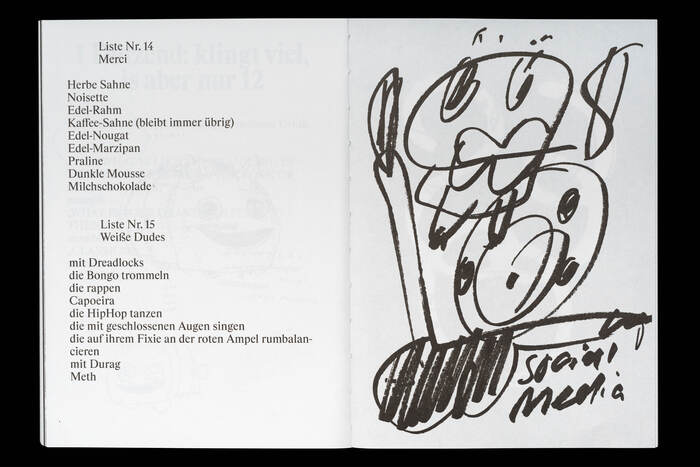 In his first evening-filling artist's book Notizen (“Notes”), Sebastian Haslauer combines texts with drawings, most of which were created on the road, and which have one thing in common: they are unfinished, processual – and not to forget entertaining, meaning funny or thought-provoking.