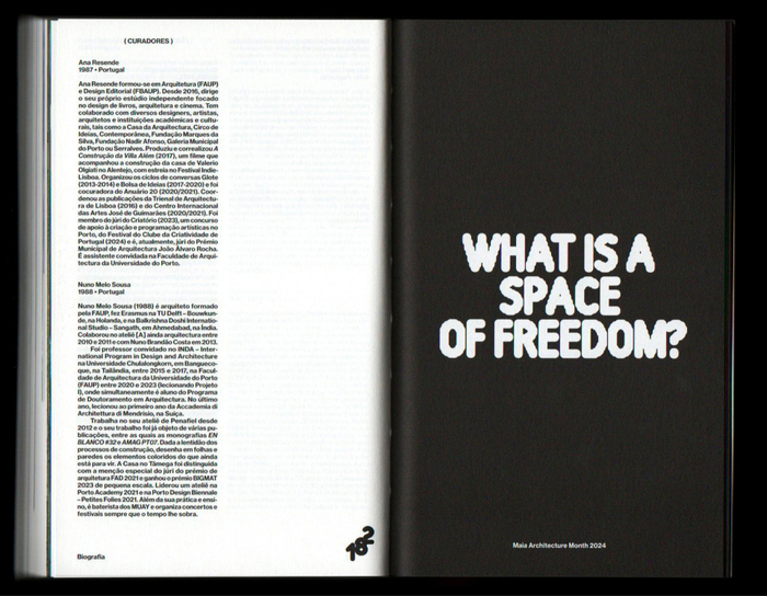 In 2024, as Portugal commemorates the 50th anniversary of its liberation from dictatorship, MAM (Maia Architecture Month) turns its gaze to the idea of freedom. Under the central question, “What is a freedom space?”, the exhibition brings together 50 architects, thinkers, and visual artists to explore the complex, often elusive nature of this concept.
