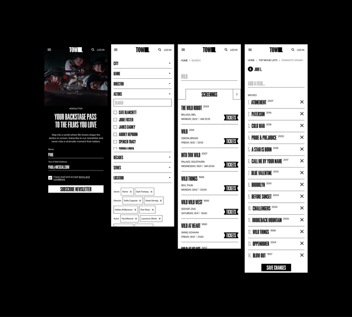 Our design draws directly from cinema’s visual language – starting with FT Calhern, a typeface that echoes old movie marquees and title sequences. From there, the palette builds outward: the signature yellow of classic black-and-white film credits expanding into the rich saturation of Technicolor. Familiar codes, made new. Our work included developing a custom voting system, an intuitive website, and social media templates to enhance user interaction and expand the platform’s reach.