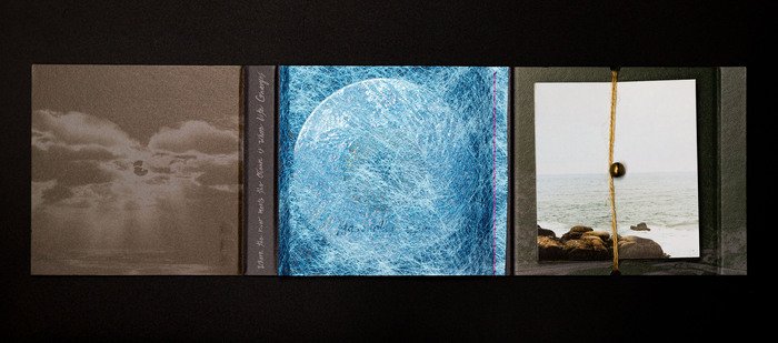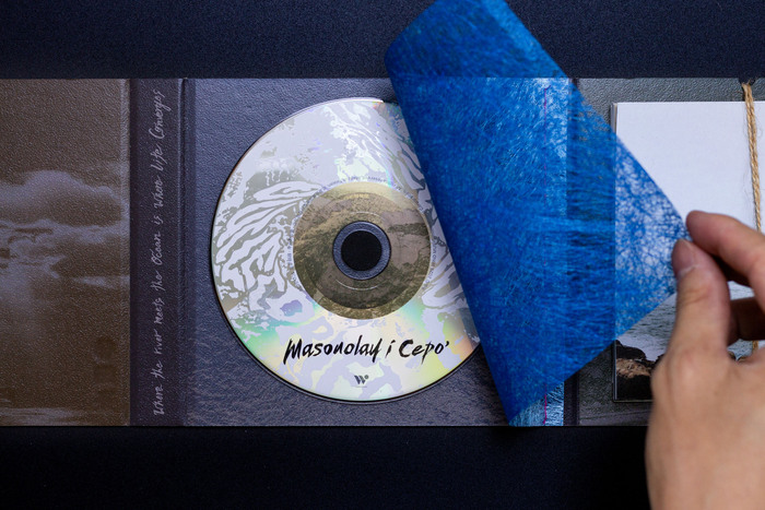 The album packaging utilizes a three-layer structure to mirror the band’s worldview. The lyric book is secured by hand using hemp rope and traditional hip-bells, while carefully selected fabrics are used to evoke the fluid movement of seawater. By employing a diverse range of materials and a near-handcrafted approach, the packaging reflects both Outlet Drift’s eclectic musical style and the cultural preservation of their tribe.