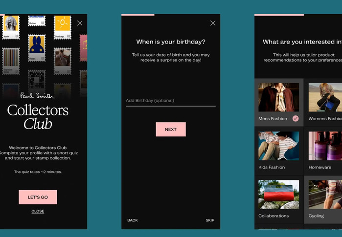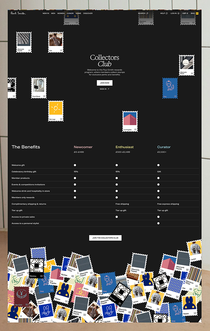 Loyalty programme and identity for the Paul Smith's Collectors Club, designed by agency Limesharp.