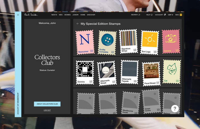 A stamp-collecting loyalty programme for British fashion brand Paul Smith, where members build a digital album of over 100 bespoke illustrated stamps earned in-store and online across 20 countries.