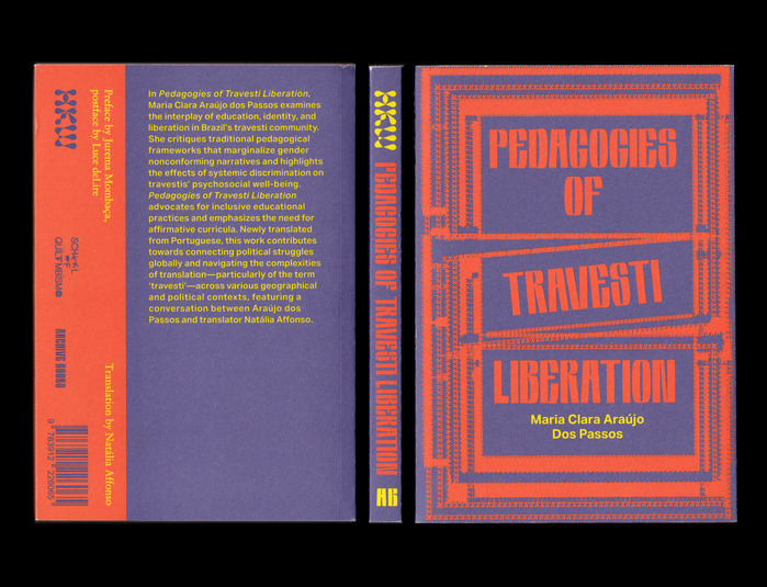 In Pedagogies of Travesti Liberation, Maria Clara Araújo dos Passos examines the interplay of education, identity, and liberation in Brazil’s travesti community. She critiques traditional pedagogical frameworks that marginalize gender nonconforming narratives and highlights the effects of systemic discrimination on travestis’ psychosocial well-being. Pedagogies of Travesti Liberation advocates for inclusive educational practices and emphasizes the need for affirmative curricula. Newly translated from Portuguese, this work contributes towards connecting political struggles globally and navigating the complexities of translation— particularly of the term ‘travesti’—across various geographical and political contexts, featuring a conversation between Araújo dos Passos and translator Natália Affonso.