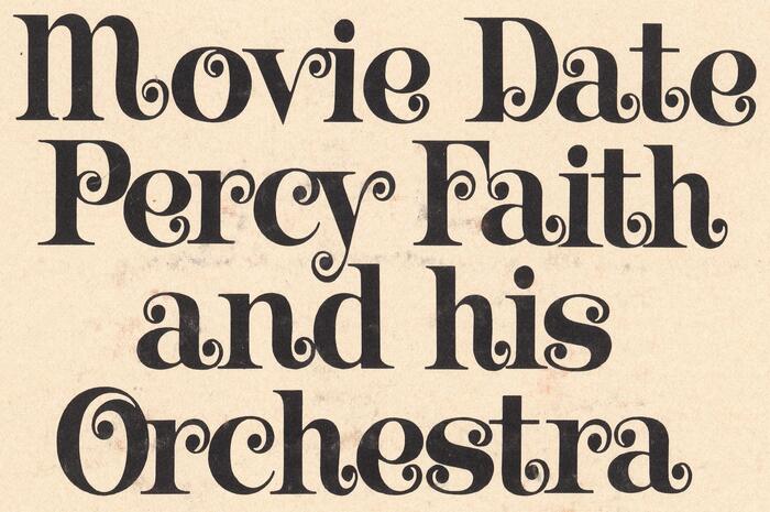 Here's another example of a font in use on a Percy Faith cover, as well as another example of a curly font. This time around the font is Photo-Lettering's Messick Exotic Bold (coupled with News Gothic). The album is a movie-music-themed compilation that was released exclusively through the Columbia Record Club.