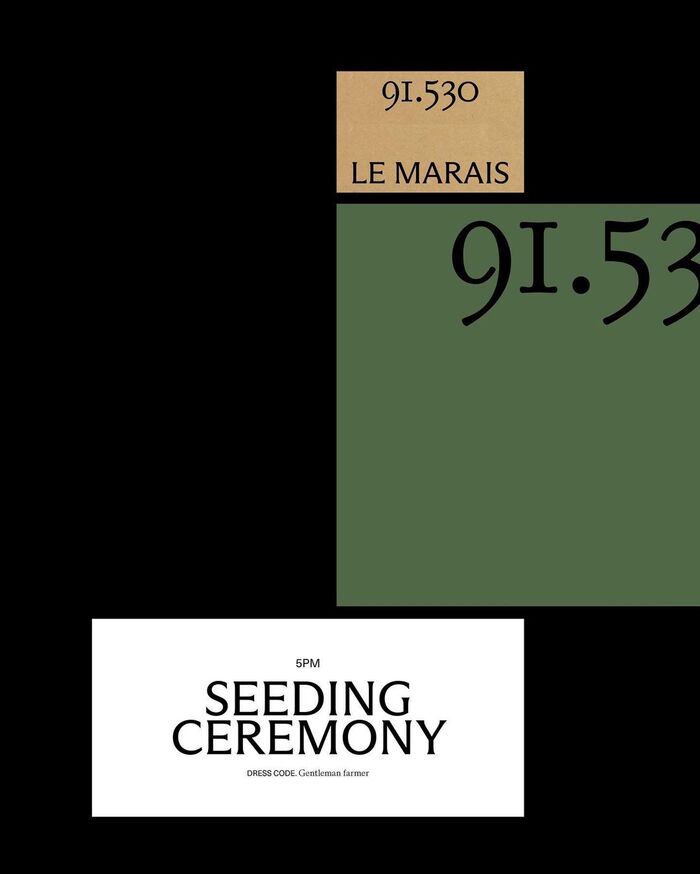 The event visuals are set in Kalice Regular for the 91.530 logo (designed by Margot Lévêque) alongside Arizona Flare for "Le Marais" (designed by Elias Hanzer) and the sans serif Neue Haas Unica (designed by Toshi Omagari).