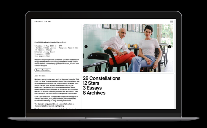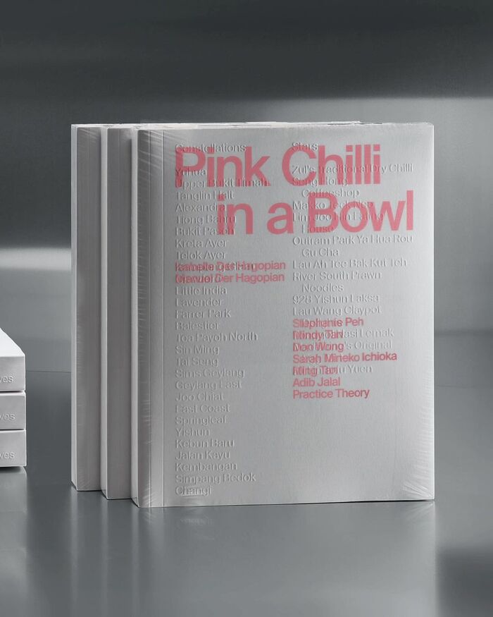 Published in 2024, Pink Chilli in a Bowl is a book co-written by Manuel and Isabelle Der Hagopian, archiving views, places and local cuisine of Singapore in the form of photographs, addresses or writings; challenging both imagination and senses of the readers. In the words of the authors: