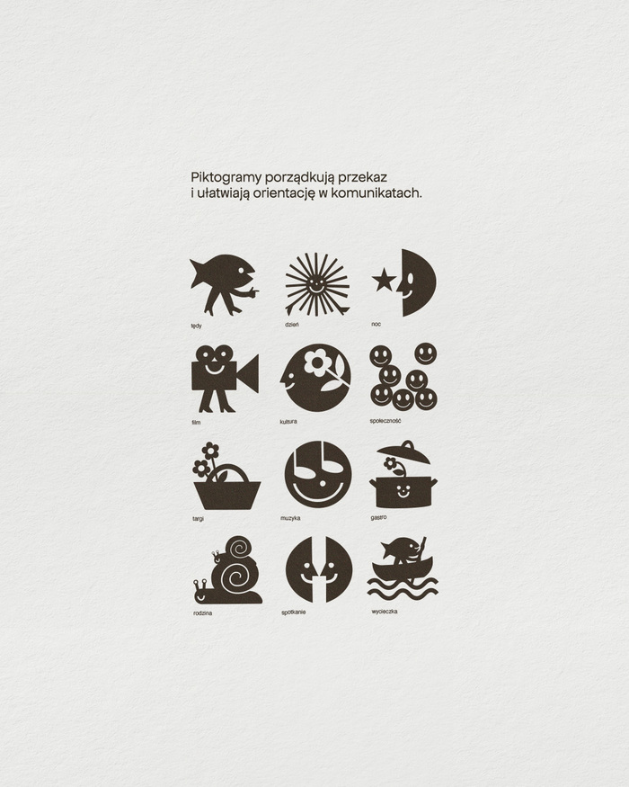 The concept grew from a simple block of colored paper – playful, inclusive, and DIY in spirit. Color pairings distinguish daytime from evening events, while a set of pictograms organizes information for clarity and intuitive navigation. The system now extends across wayfinding, social media, and the website.