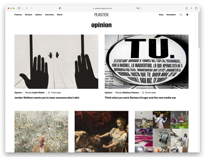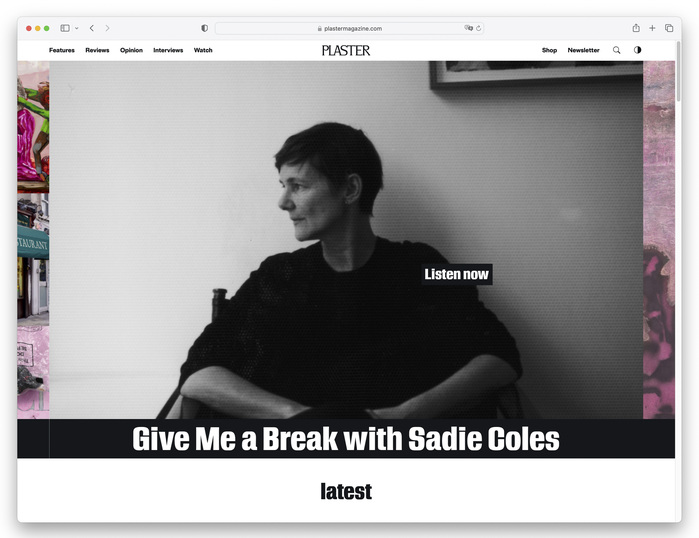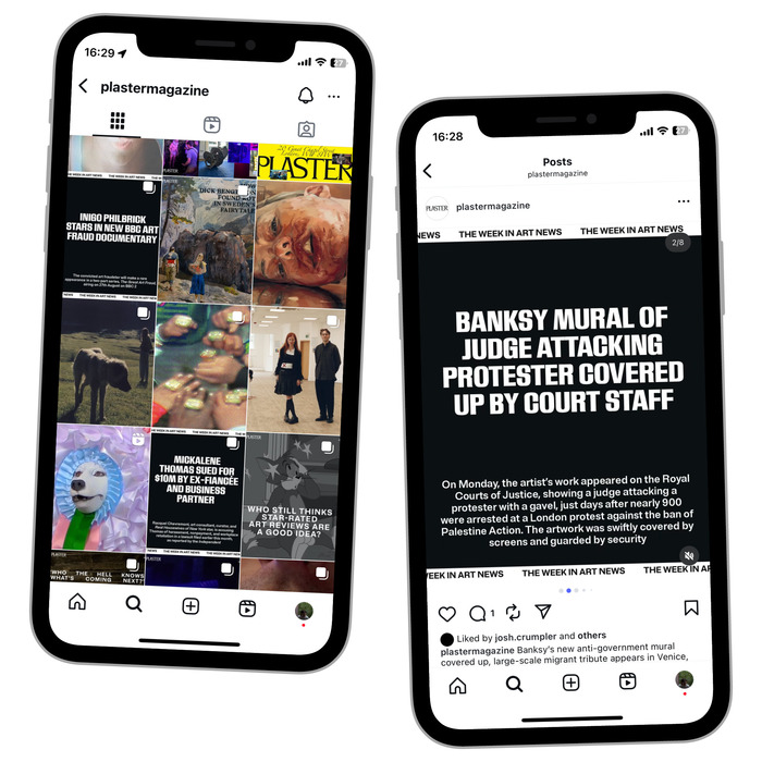 Plaster is an independent art magazine covering visual culture and offbeat stories from the contemporary art world. Founded in 2020 as a poster zine and relaunched in 2023 as a print and digital publication, the magazine positions itself as “the art magazine that won’t hurt your head.”