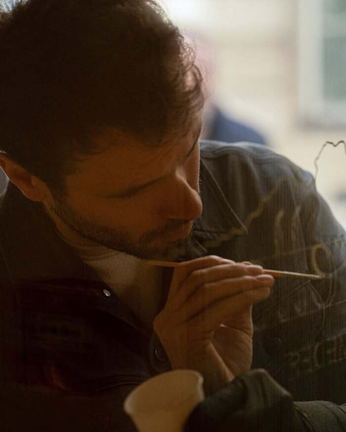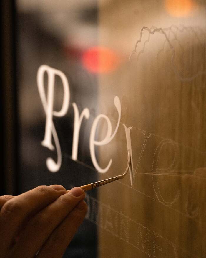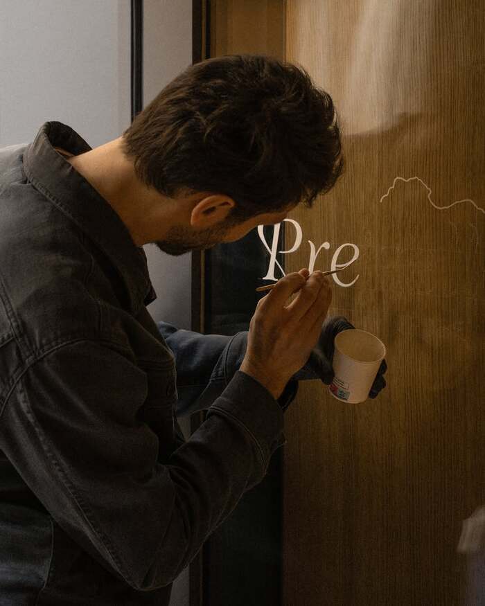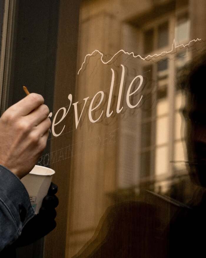The logo uses Ninna Italic (designed by Margot Lévêque), combined with light caps from Ready (by Andrei Robu) for the chef’s name. The talented sign painter Victor Bert added the final touch by painting the logo on the door.