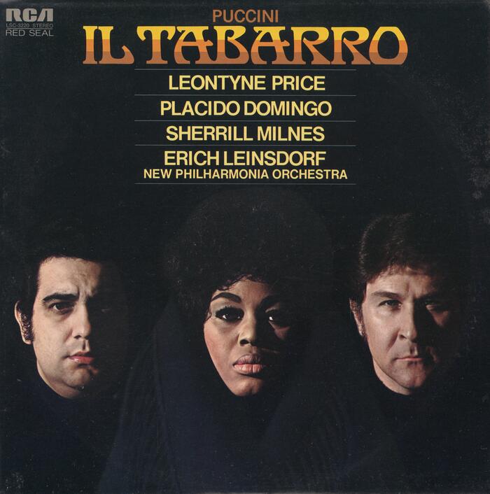 Il tabarro (The Cloak) is a one-act opera by Giacomo Puccini. This recording featuring Leontyne Price, Placido Domingo, and Sherrill Milnes was released on RCA Red Seal Records in 1971. Erich Leinsdorf conducted the New Philharmonia Orchestra.