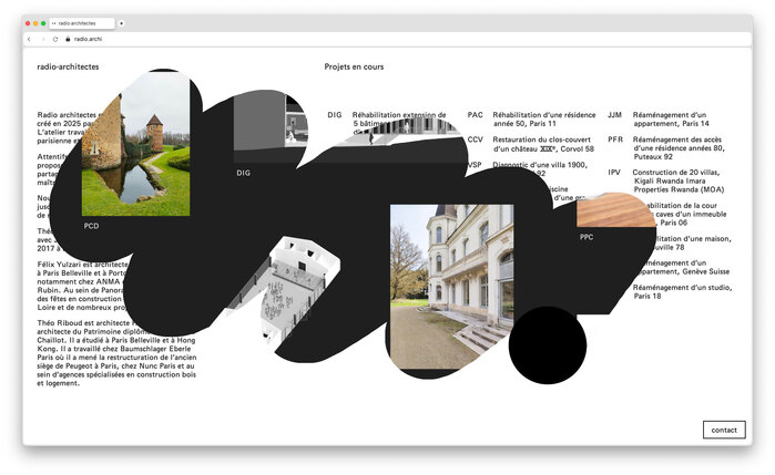 The mini-website designed by WA75 showcases a selection of project of the agency. By moving the cursor, the user can reveal images of the projects hidden behind the text.