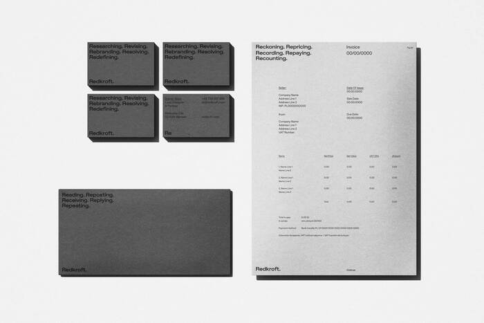 By centering the design on “Re,” we aimed to echo the studio’s process—one of continual refinement, constant re-evaluation, and purposeful evolution. There’s no need for embellishments here; just type, thoughtfully placed, allowing each term to reflect Redkroft’s intent. It’s an identity that is as clear and direct as the work we deliver.