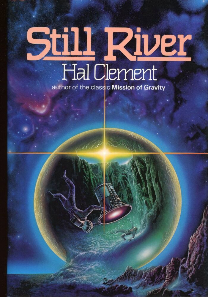 A rare sighting of Obliq, a Letraset release from 1984, used in both of its weights for a science fiction novel by Hal Clement (1922–2003):