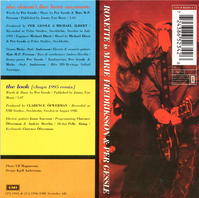 Roxette released the greatest hits album Don’t Bore Us – Get to the Chorus! in 1995. “She Doesn’t Live Here Anymore” was the third single from that album being one of the new tracks. The whole sleeve has text written in Bodoni and was designed by EMI lead designer Kjell Andersson. The B-side is a remix of “The Look”.