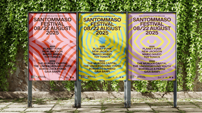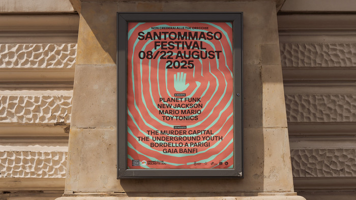 When Santommaso Festival, a new music event in Southern Italy, set out to establish its first visual identity, the goal was to translate a deeply rooted local story into a contemporary cultural experience. Named after the city’s patron saint, the festival draws inspiration from a narrative of faith, wonder, and the legendary discovery of sacred relics. Our challenge was to transform this sense of mysticism into a strong and recognizable visual language capable of launching a brand-new event. We developed an identity that balances symbolism and sound, built around a bold, uppercase typeface that provides consistency and authority, paired with a system of mystical symbols radiating outward like sound waves to convey energy and movement. The graphic system comes to life through dynamic poster compositions, where symbols expand into immersive visuals, supported by a vibrant, contemporary color palette. The result is a striking and memorable identity that honors the city’s heritage while expressing the fresh, energetic spirit of live music.