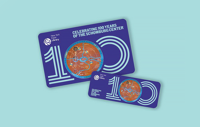 Featuring the Community Gothic typeface by Frere-Jones Type, the design was created by Brooklyn-based Morcos Key, who collaborated with The New York Public Library’s Schomburg Center for Research in Black Culture on the celebratory announcement of its centennial. To mark the occasion, a special limited-edition library card was produced featuring artwork by Houston Conwill for the Schomburg’s 100th anniversary.