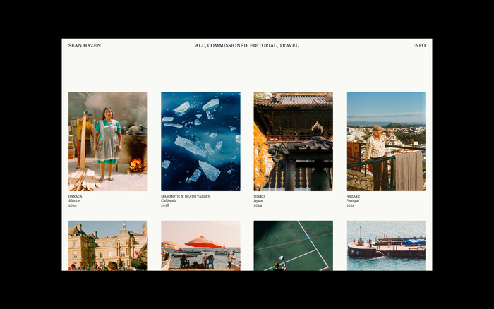 ABC Marist was selected as the website typeface for its humanist warmth and technical versatility. The typeface’s old style figures, small caps, and italics provide typographic hierarchy without competing with the imagery—a restrained approach that complements the elegance and soul of Sean’s work.