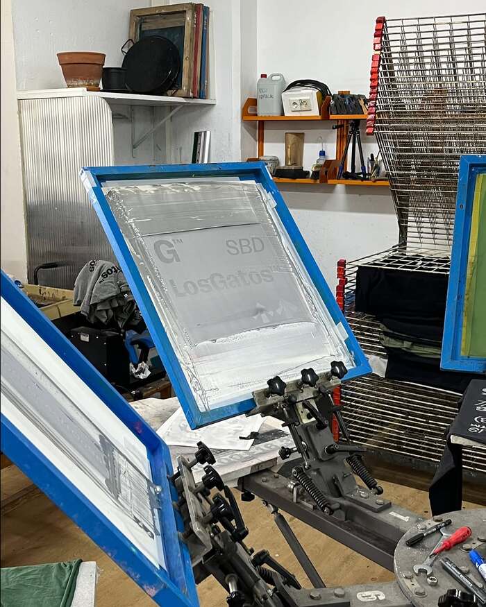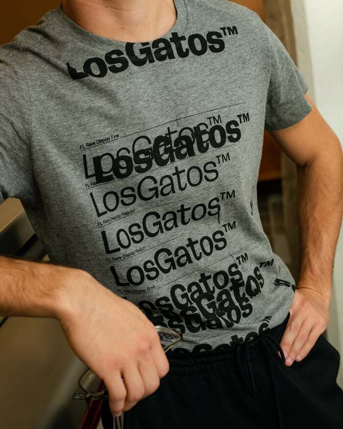 FL Rare by Flight Mode Type (Alex Slobzheninov) is the brand font of Serigrafia Los Gatos, as proposed by Design Office Fun (Paula de Álvaro):