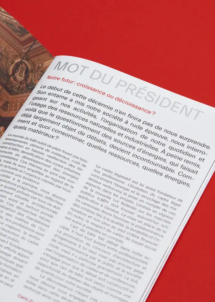 The Swiss Society of Engineers and Architects (SIA) is the leading professional association for specialists in construction, technology and the environment. Represented by 18 cantonal sections and one international section, the SIA has 16,000 members active in the fields of architecture, landscape and engineering. Its mission is to defend and promote Swiss building culture at the professional, political, social, economic, environmental, cultural and educational levels.
