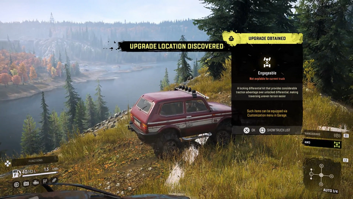 In SnowRunner, players traverse difficult terrain to deliver cargo and complete various construction and repair tasks across the map. The game was developed by Saber Interactive and published by Focus Home Interactive in 2020.