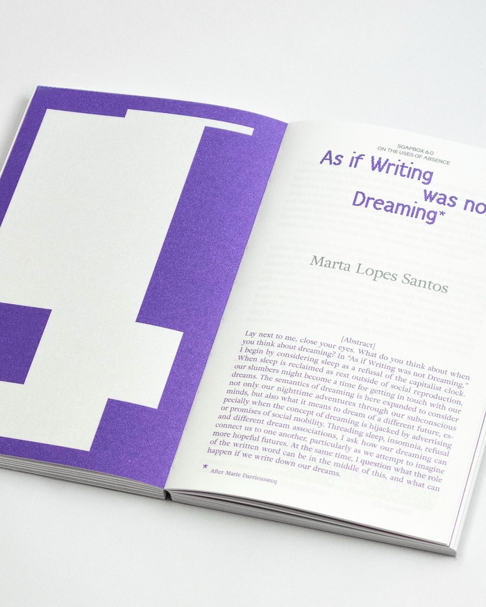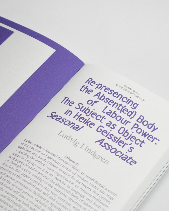“On the Uses of Absence” is the title of Soapbox, issue 6.0: