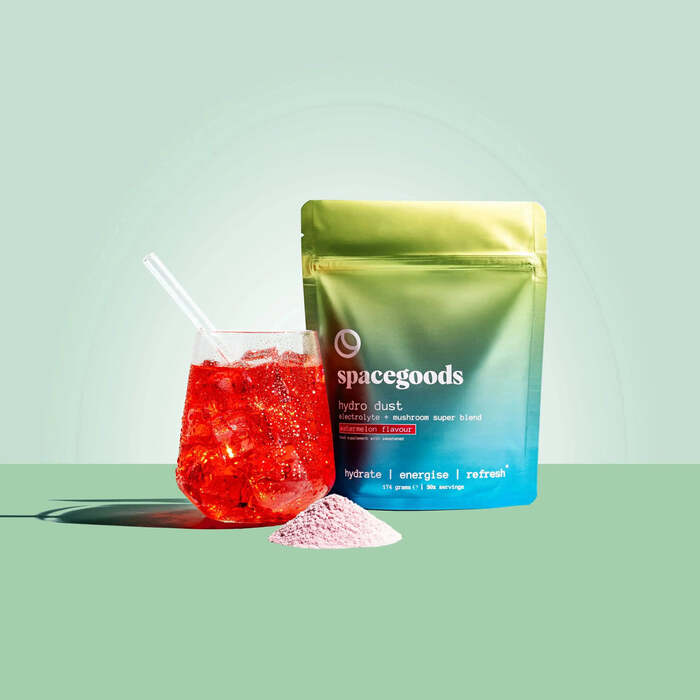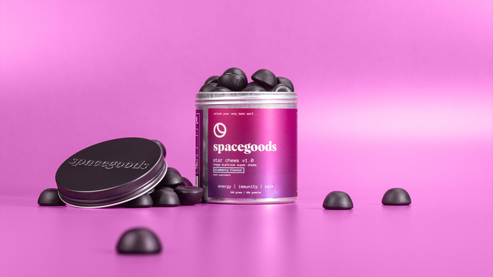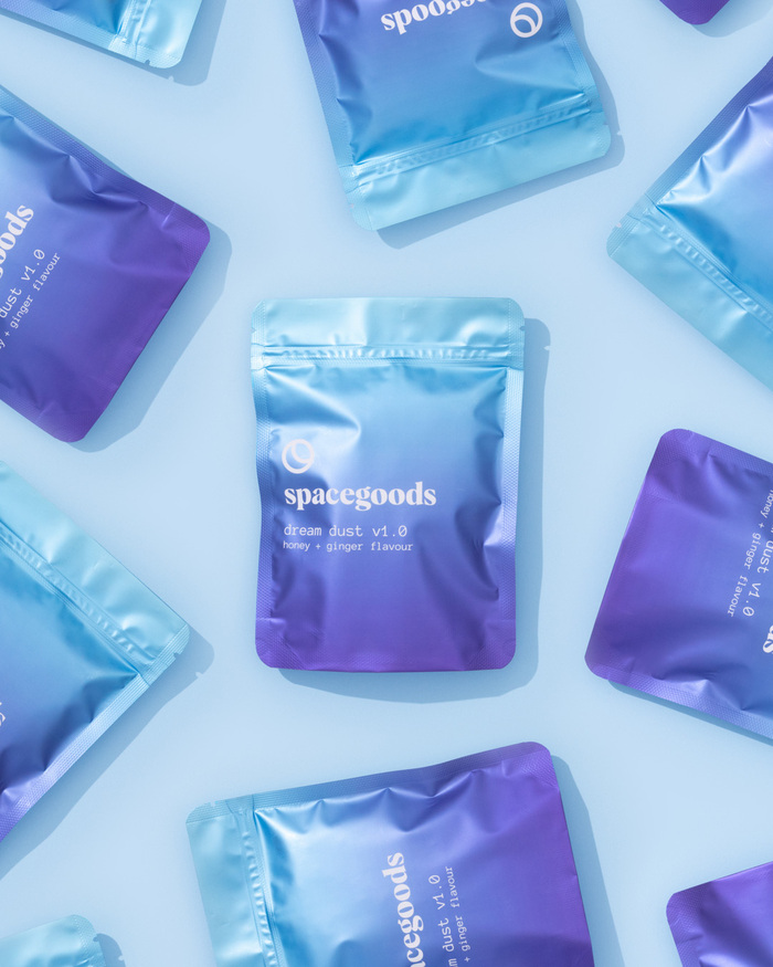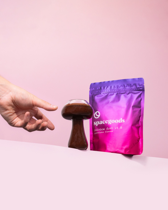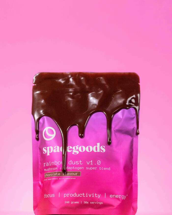 Albra from Ultra Kuhl is used for the rebrand of Spacegoods. Their champion product, Rainbow Dust, “combines the coffee you love with functional mushrooms and adaptogens to promote focus, energy, calm, immunity and gut health”.
