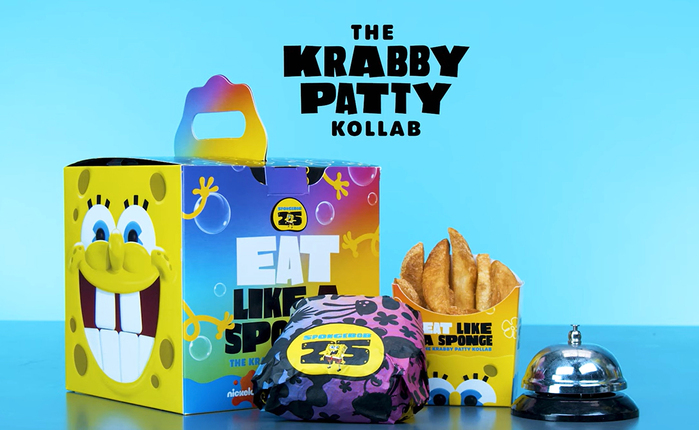 The design is by Thanh Nguyen, Senior Designer at Nickelodeon, with art direction from Dana Kinlaw, using Asphalt by Frere-Jones Type. The celebration also included Wendy’s and Paramount partnering to launch Wendy’s Krabby Patty Kollab, as well as the release of a SpongeBob SquarePants special edition magazine by Den of Geek.