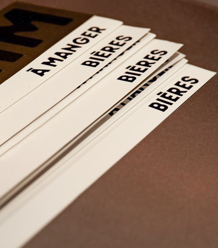 For the identity, Install Bold plays a main role, used at different scales, on the menu and as big sign on the restaurant window.