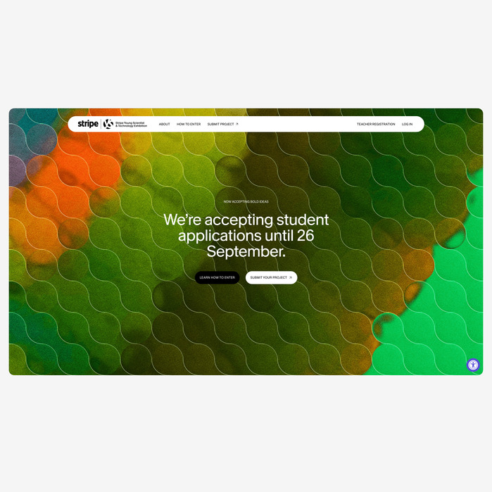 The website for the Stripe Young Scientist & Technology Exhibition ’26 is using Melange Grotesk Regular in combination with Tiny 5×3 160 and Söhne for its website typography.