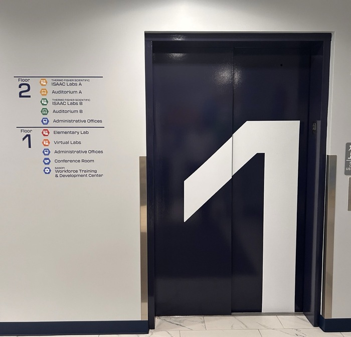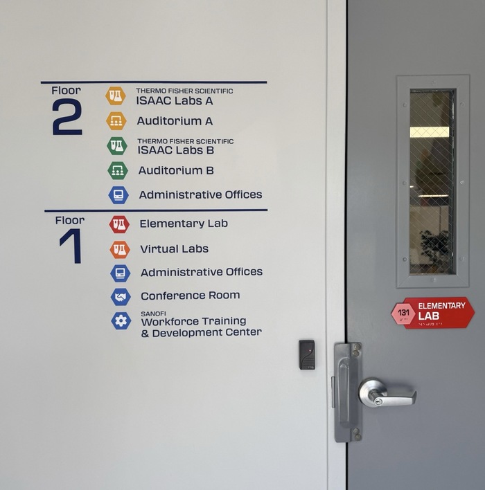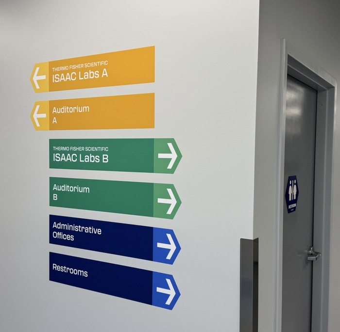 Transducer was used for the wayfinding, directories, ADA-compliant door signs, and other signage throughout the location.