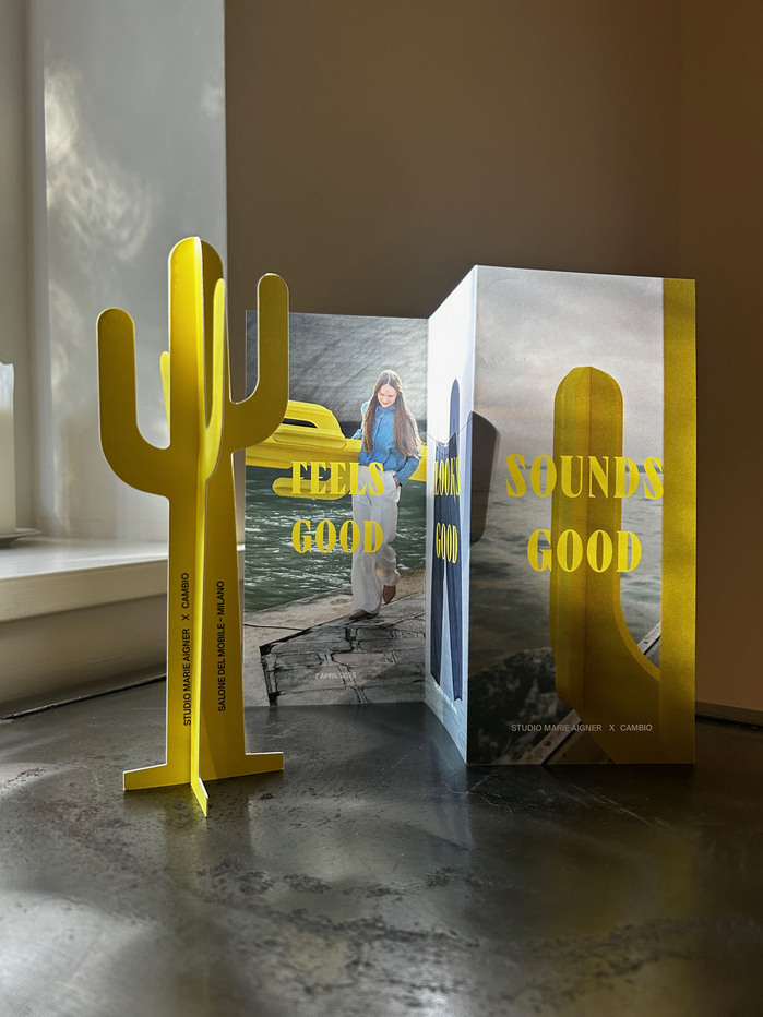 Visual identity for STUDIO MARIE AIGNER X CAMBIO at Salone del Mobile Milano 2025. The assignment included exclusive print invitations, guerrilla marketing, and the claim.