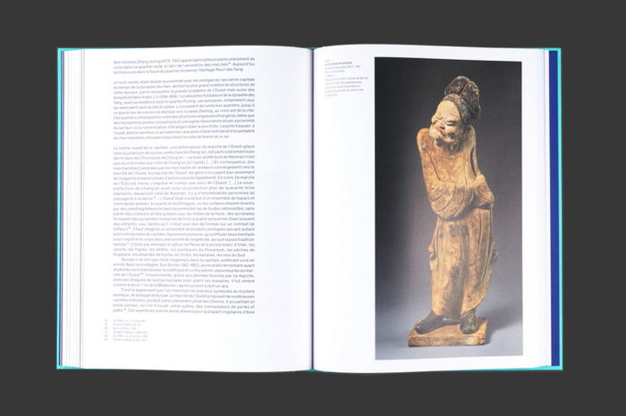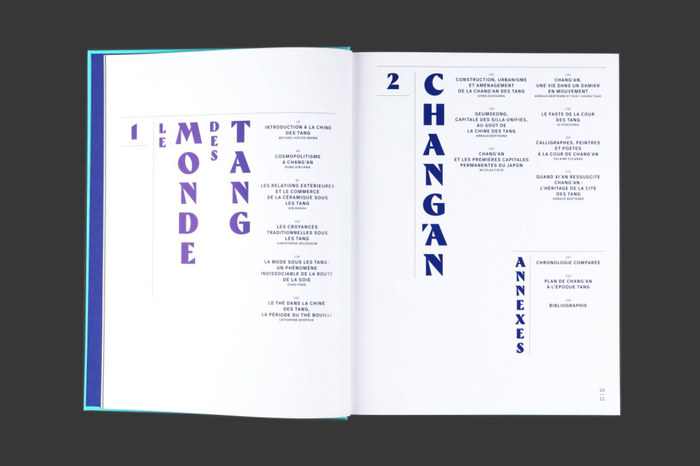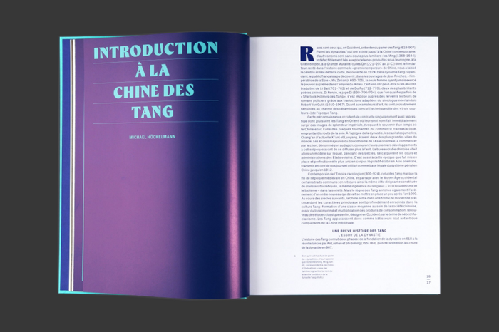 The design of the exhibition catalogue reflects the rich cultural and historical context of the Tang dynasty. The bilingual publication uses the heavier weights of Ergon for the title and headlines, evoking an atmosphere of tradition while maintaining a contemporary feel. The layout organizes the content in a way that is both informative and visually engaging, with imagery and text working together to highlight the multicultural and prosperous nature of the Tang dynasty, particularly the city of Chang'an as a crossroads of diverse cultures.