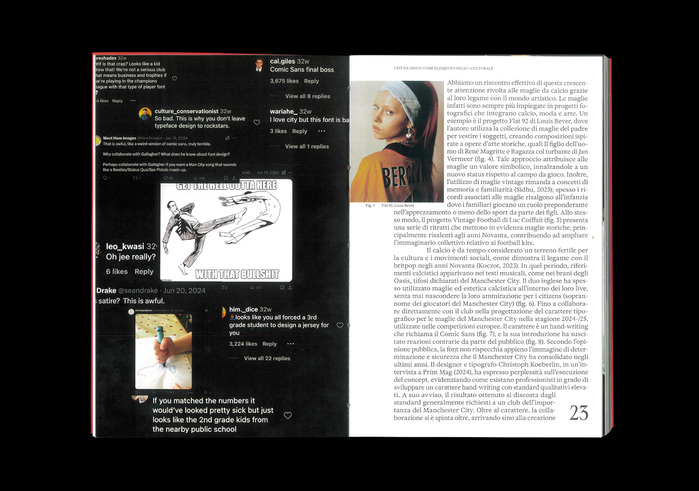 Typography shapes how numbers (and the players who wear them) are perceived, influencing a team’s image. To explore this, sixteen typeface families were developed: some reinterpret existing football fonts, while others were created from scratch to test their appropriateness and public perception in kit design.