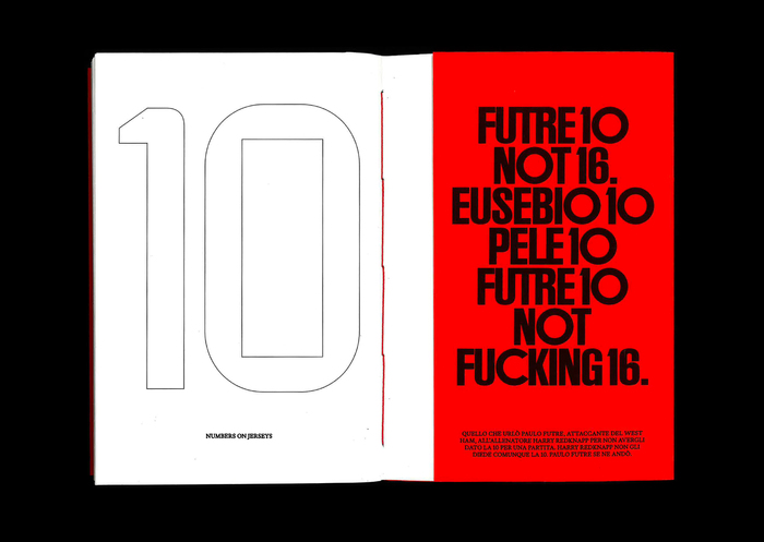 Terzo Tempo is my Master’s thesis made at Università Iuav di Venezia under the supervision of Luciano Perondi and Fiorella Bulegato. It examines the evolution of typographic design applied to football jerseys. Through historical research, the project shows how jerseys have become culturally and economically significant. The focus is on the development of jersey numbers, which have transformed from purely functional elements into meaningful symbols of identity.