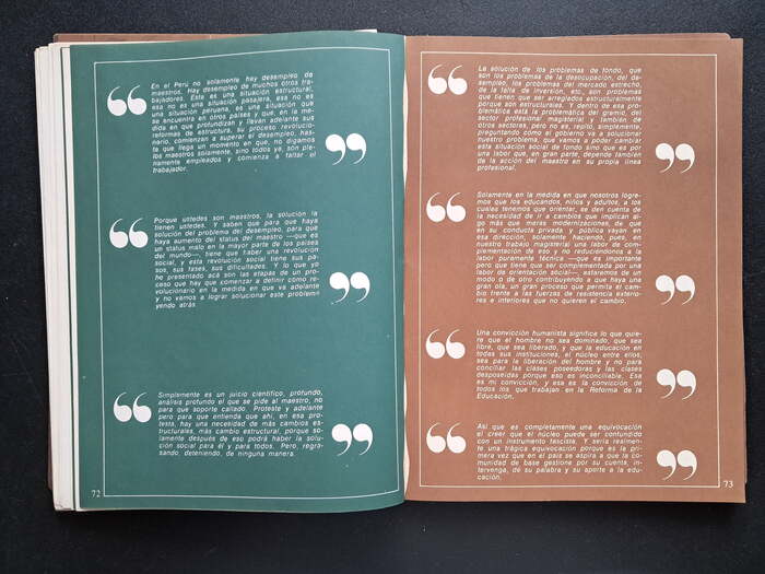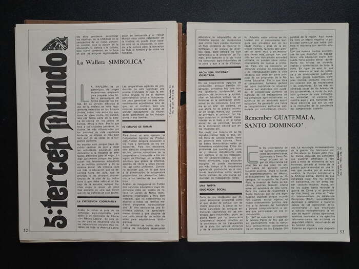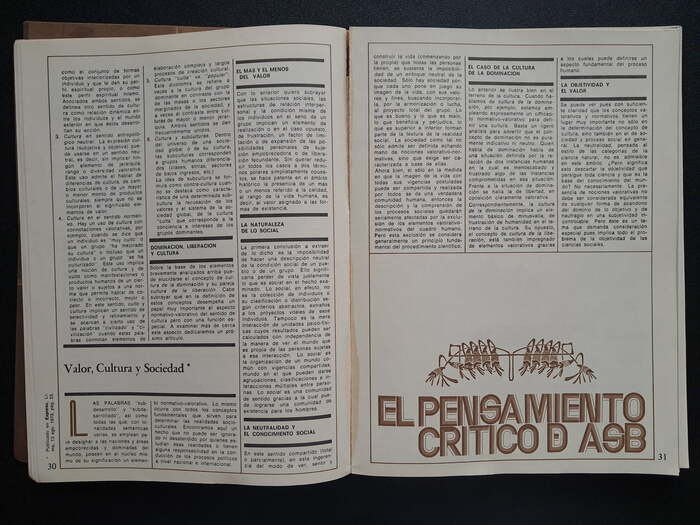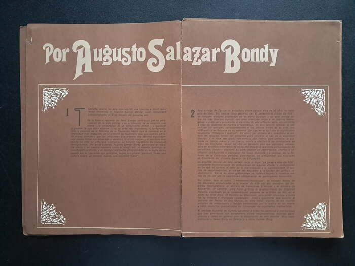 Number 9 is dedicated to philosopher, educator and journalist Augusto Salazar Bondy (1925–1974). Display typefaces used in this issue include Michel, Thalia, and Ludlow Garamond. Body text is set in Helvetica and Permanent, with drop caps from Neo Script.