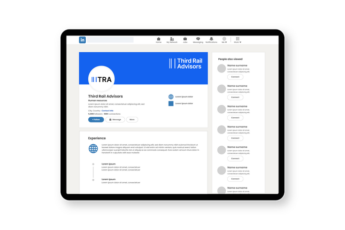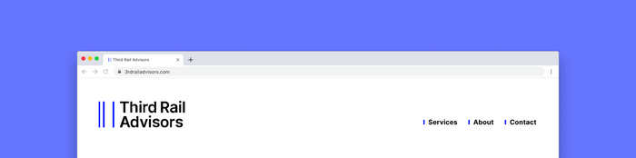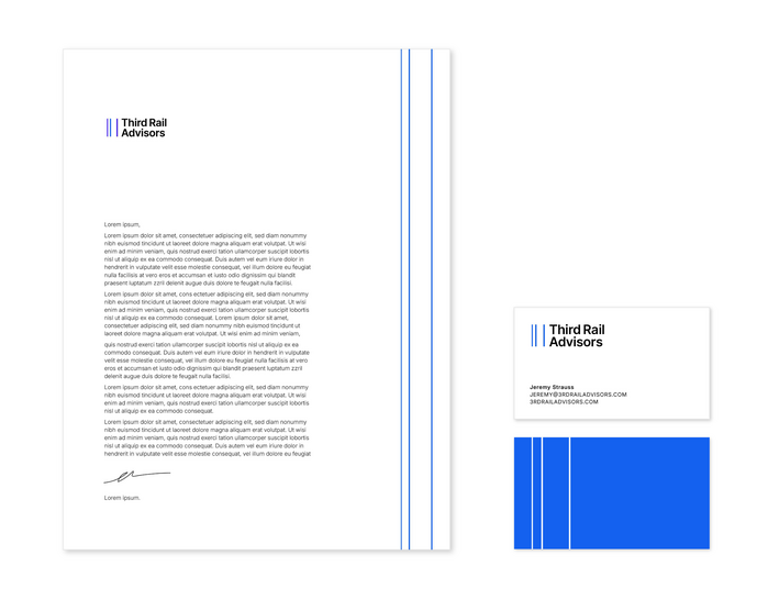The founder of Third Rail Advisors approached me to create a simple but bold logo for his new business. The name “Third Rail” was inspired by the electrified rail on a subway track: they aim to empower and embolden their clients’ business strategies. Their new logo needed to work for more serious business documents, while also being contemporary and dynamic.