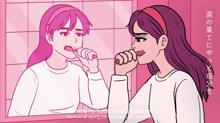 “歩む” (“Movin’ On”) is the third song by Indonesian J-Pop alternative rock music group Thousand Sunny, released on 14 November 2025 with video clip animation done by Pedro Musa (Senimator Studio). Japanese lyrics on this video clip use the Japanese rounded sans-serif (Gothic) typeface Kiwi Maru by Moji-Waku Research while Indonesian and Japanese Romaji lyrics are in Noto Sans.
