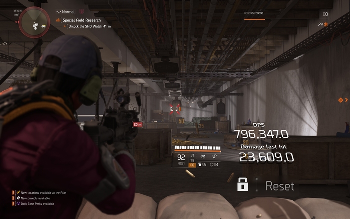Returning from the first game, The Division 2 largely uses Borda Regular, Demi-Bold and Bold for its user interface which remained more or less the same with some additional expansions and refinement to the design to fit the game's larger amount of content. Noto Sans is used for the chat window and Helvetica continues to be used for the game's logo.