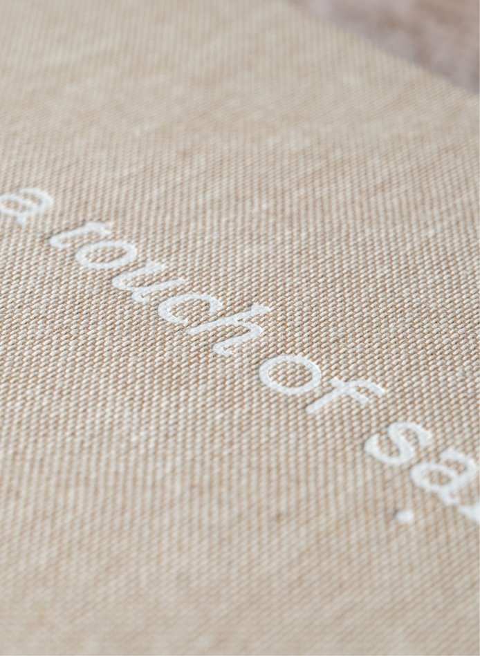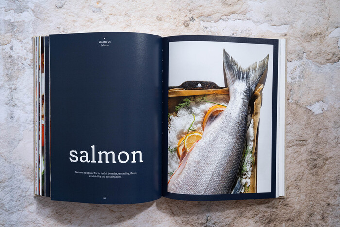 A Touch of Salt weaves together stories from local anglers and harvesters with straightforward, family-style recipes from the Rowayton Seafood team. Its structure is deliberate—divided into ten chapters, each focused on a single species. Design details carry meaning throughout, from the subtle dot beneath the a in salt to the consistent visual language that ties the book together.