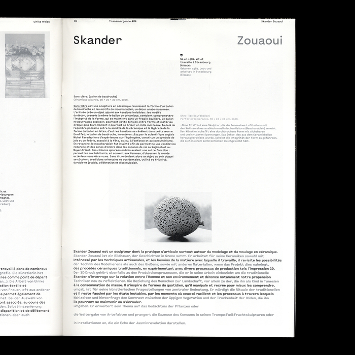 Thomas Leblond and Audrey Ohlman did the graphic design with EB Ackerhof from Électro-bibliothèque. Transmergence #04 was published by Pétrole and FRAC Alsace.