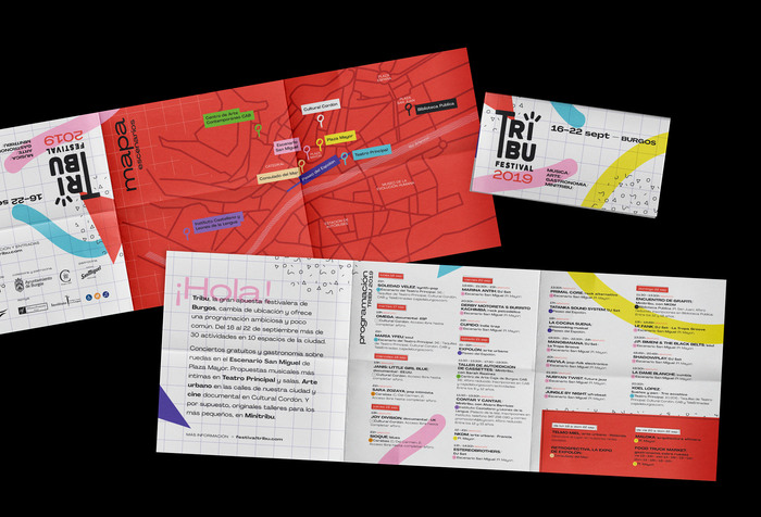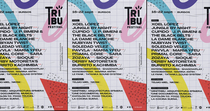 Tribu is a multidisciplinary festival held in various venues throughout the city of Burgos over severl adys at the end of summer. A festival for all ages, with a multitude of free activities that fill the city with color and music. Once again this year, we’re in charge of the graphics for all the festival materials.