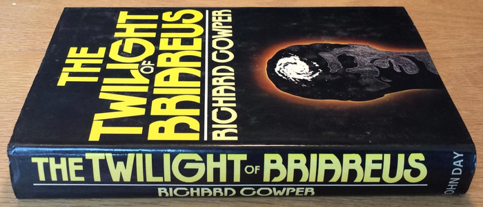 First US edition of The Twilight of Briareus, published in 1974 with a jacket design by Mike Stromberg. All text is set in the bold weight of Leo Castriota’s Flat Top. The interior (not shown here) is set in Times New Roman.