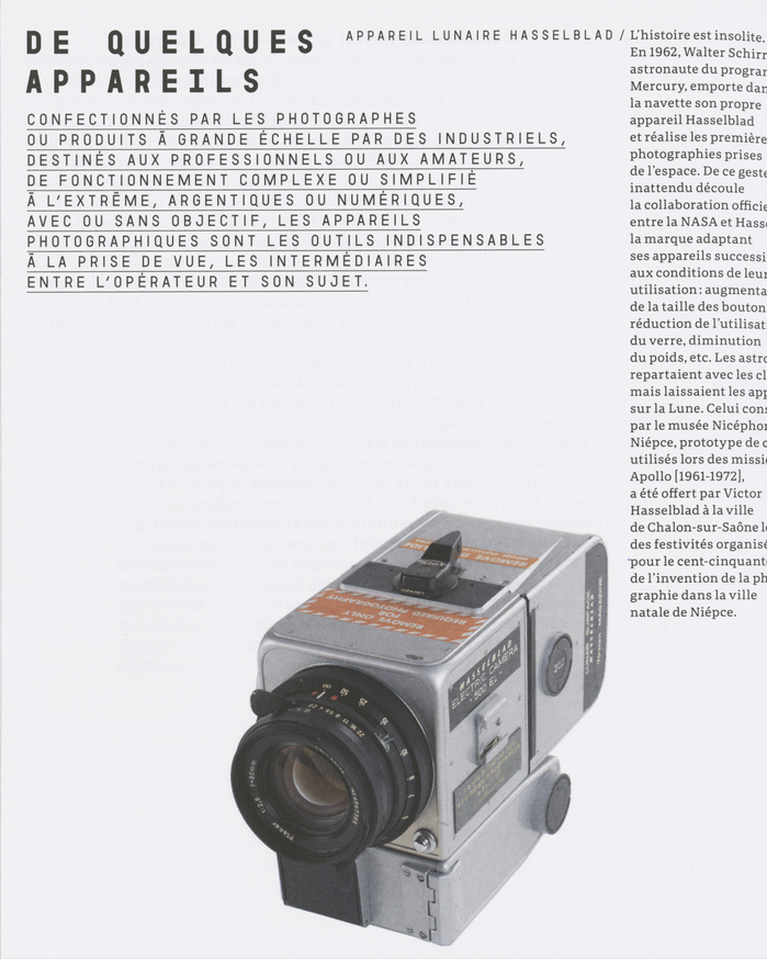 The design of this publication, published by Éditions Textuel, was entrusted to the French graphic designer Le Petit Didier. He chose the typeface Garaje (with Garaje Mono, by Thomas Huot-Marchand, 205TF) for headings and subheadings, and the typeface Portada Text (José Scaglione and Veronika Burian, TypeTogether) for body text and captions.